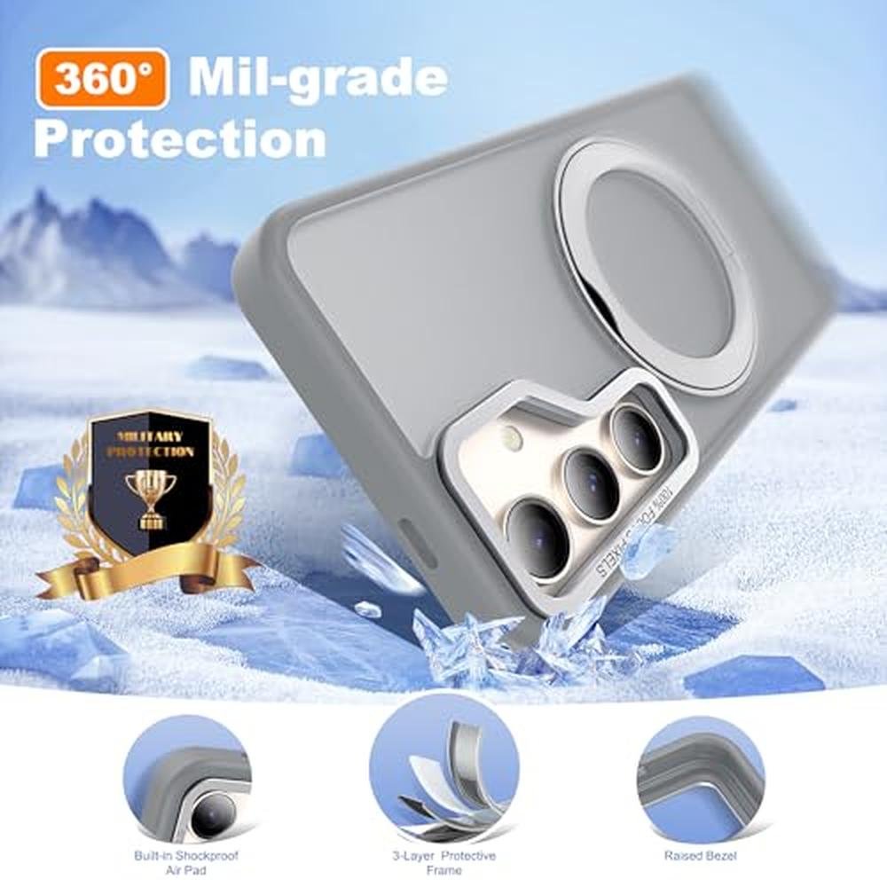 - • Magnetic Stand for Mag-safe - This case is compatible with all Mag-safe accessories and third-party Qi-certified wireless chargers. With built-in magnetic ring stand(26pcs magnets), it can be locked to wireless chargers,ensures faster and stably charging, enhance your wireless charging experience.