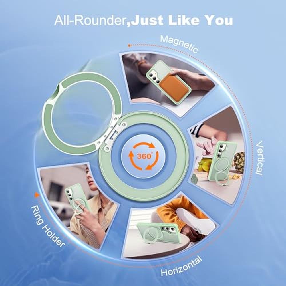 - • Hands-Free Kickstand - Innovative 360 Rotatable Magnetic Ring Stand can be placed in portrait or landscape. You can adjust it as your wished. Enjoy every watching moment without extra support.