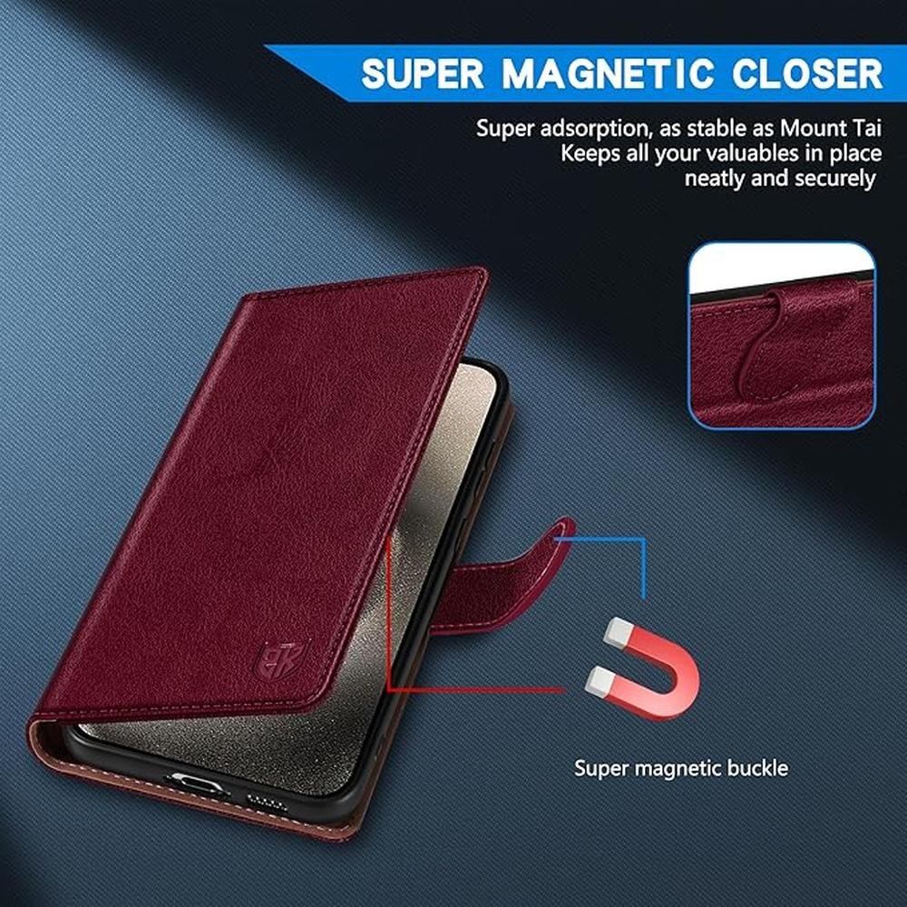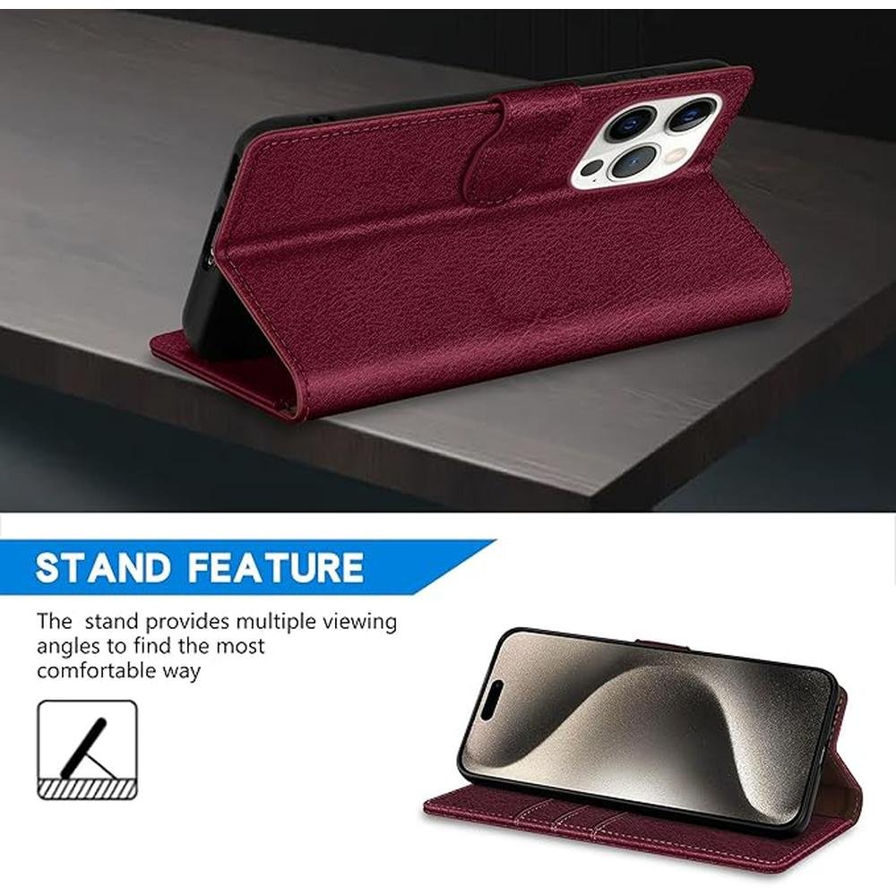 pbZZXX Walletb Case for iPhone 15 Pro Max 6.7 inch with RFID Blocking 3 card holder Plus a side pocket help you carry 3 cards and a few bills conveniently.(Released in 2023 ColorWine Red)ppAdjustable horizontal kickstand for hands-free reading or movies.ppbAccessories CompatibilitybppiPhone 15 Pro Max 6.7 inchppNot fit other phones,Please check your phone model before purchasingppbFeature HighLake bluesbppbCard Slots amp Money PocketbppDesigned with 3 card slots and a pocket for conveniently storing essential cards and cash,ppwallet and case in one style makes it a good companion for daily life and business trip.ppbBuild-in KickstandbppThe invisible kickstand can be switched to a horizontal position and acted as a firm stand.ppGives your phone a comfortable viewing angle while not adding thickness.ppbStrong Magnetic ClosingbppThe Strong Magnetic Closing secures your phone and other personal belongings in the case,no more worrying about losing your important items.ppbNOTEb Holding too many cards may weaken Strong Magnetic Closing functionalityppConvenient To Use.ppbFull protectionbppPrecise cutouts for speakers, earpiece, camera and other functional ports allow to access to all ports and functions easily, without removing the case.ppbPERFECT GIFTbppIdeal as a graduation gift, birthday gift,for women or men, teenagers or adults,elder.p