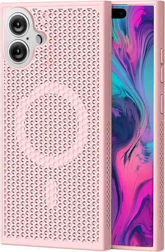 CCSmall for Apple iPhone 16 Plus Heat Dissipation Case with Magnetic Ring, Mesh Breathable Hollow Cellular Hole Slim Phone Case Cover for iPhone 16 Plus SR Pink