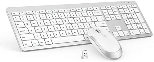 Wireless Keyboard and Mouse Combo - Full Size Slim Thin Wireless Keyboard Mouse with Numeric Keypad with On/Off Switch on Both Keyboard and Mouse - White & Silver