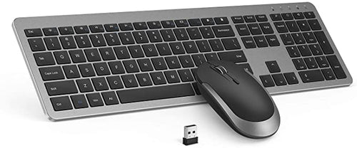Wireless Keyboard and Mouse Combo - Full Size Slim Thin Wireless Keyboard Mouse with Numeric Keypad 2.4G Stable Connection Adjustable DPI (Grey & Black)