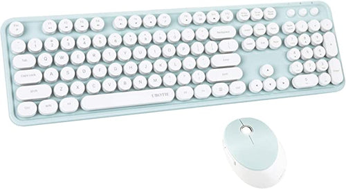 UBOTIE Colorful Computer Wireless Keyboard Mouse Combos, Typewriter Flexible Keys Office Full-Sized Keyboard, 2.4GHz Dropout-Free Connection and Optical Mouse (Green-White)