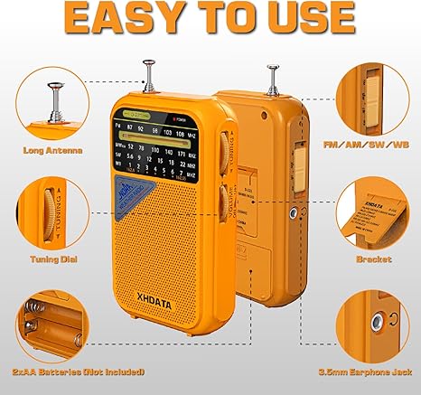 D221 NOAA Weather Radio Portable AM FM Shortwave Radio Receiver, 2 AA Battery Operated, Transistor Radio with Excellent Reception for Emergency, Hurricane, Gift, Walking and Home (Orange)