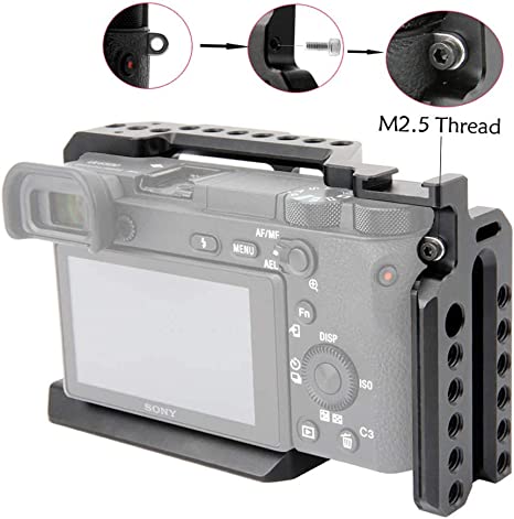 - • COMPABILITY Niceyrig cage 082 is especially designed for Sony A6400 A6500, which protects your camera body and offers mounting options to attach accessories attachments. With the cage, you still have access to the SD card slot, battery compartment and all camera controls