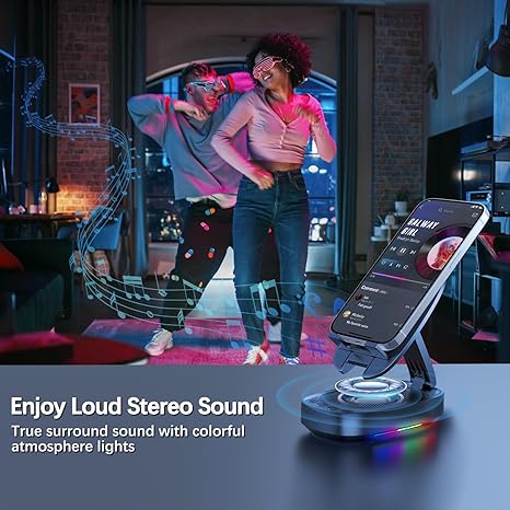 Cell Phone Stand with Wireless Bluetooth Speaker, Unique Gifts for Men/Women, Adjustable Phone Holder with 5 Colorful LED Modes, Anti-Slip Base HD Surround Sound, Compatible with iPhone/iPad, Blue