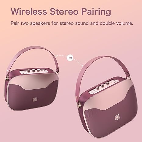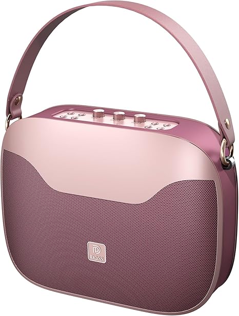 - • Purse-Inspired Design with Vintage Flair Featuring chic color-blocking and a rose gold copper-tone pink control panel, this speaker blends into home decor like a stylish accessory while rugged enough for park outings.