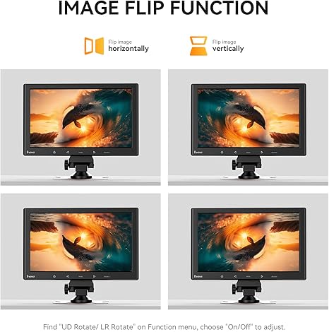 • • IMAGE FLIP CAPABILITY Featuring an image inversion function, this HDMI monitor supports vertical and horizontal mirroring, making it suitable for a wide range of applications, from teleprompter monitors to car displays