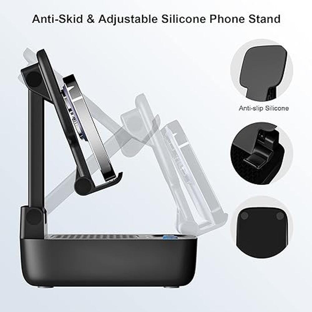 COMISO Cell Phone Stand with Wireless Bluetooth Speaker, Anti-Slip Mobile Phone Holder Compatible with Phone Tablets, HD Bass Surround Sound Speaker for Home Cinema Outdoor, Gifts for Men Women