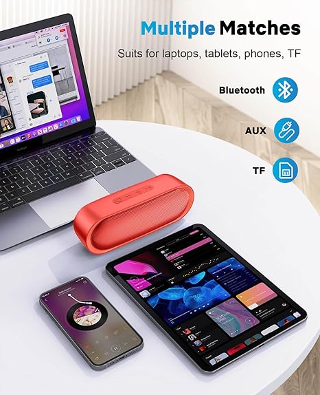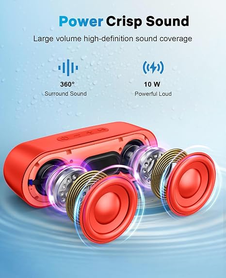 - • IPX6 Waterproof - Portable bluetooth speakers updates IPX6 waterproof and dustproof, portable for shower, pool, beach. The speaker cannot be completely immersed in water.