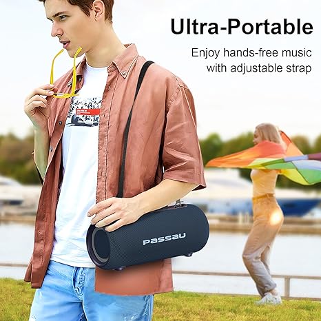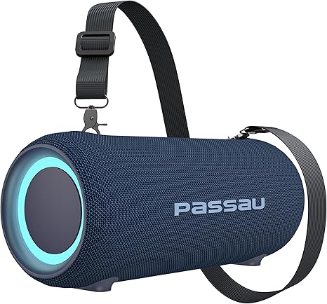 Passau Portable Bluetooth Speakers 40W Peak Loud Stereo Sound, Passive Radiators-Deep Bass, All Day Playtime, Adjustable Strap, BT5.3, IPX5 Wireless Speaker RGB Lights for Indoor Outdoor-Blue