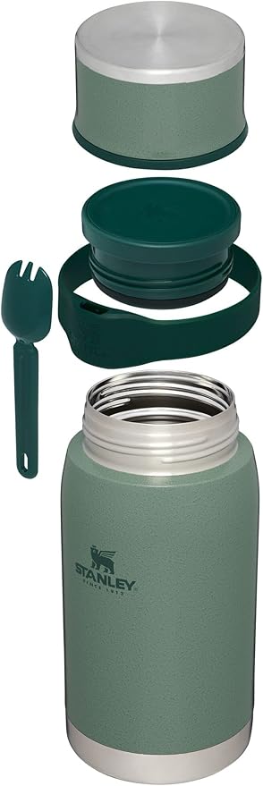 Stanley Adventure To-Go Food Jar and Spork 36 oz | Vacuum Insulated Thermos Food Container | Wide Mouth Screw On Lid | Stainless Steel | BPA-Free | Hammertone Green