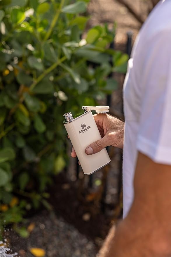- • POCKET FRIENDLY Stanley designed this 8-ounce flask for the person that s on the move, it has a flat back that easily slides into your pocket, the hinge-connected cap ensures it always stays covered to avoid leaks