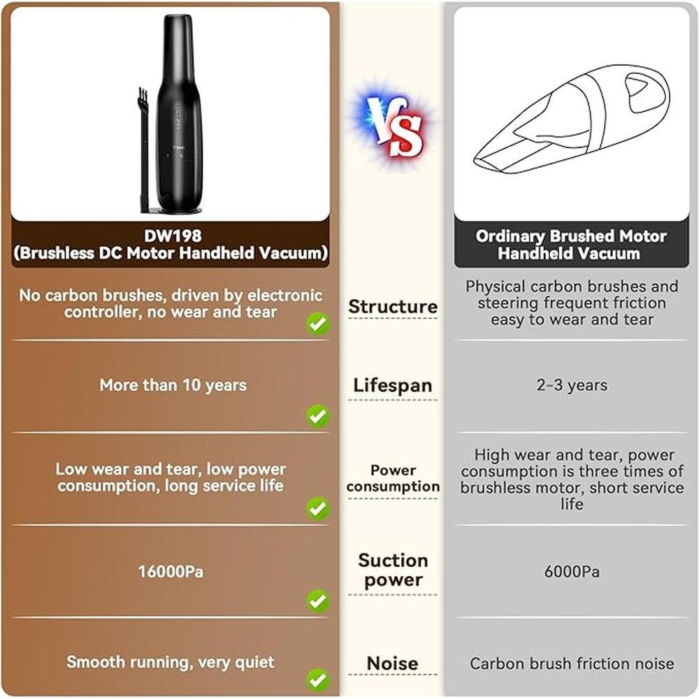 - • Powerful Brushless Motor for Deep Cleaning Equipped with a brushless motor that delivers up to 16,000 Pa of suction power, this vacuum efficiently tackles dirt, dust, and debris. Designed for long-lasting durability and low maintenance, the motor minimizes heat and noise for a quieter, more effective cleaning experience