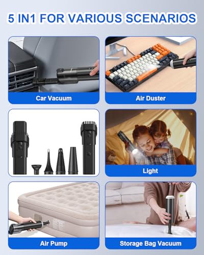 - • Versatile Cleaning Attachments This compact handheld car vacuum, measuring 11x2x2 inches, is easily portable and storable in places like drawers or glove boxes. With a range of included attachments, tackle every nook and cranny, from pet hair on upholstery to tight corners. It can also be applied to both swimming rings and inflatable pads.