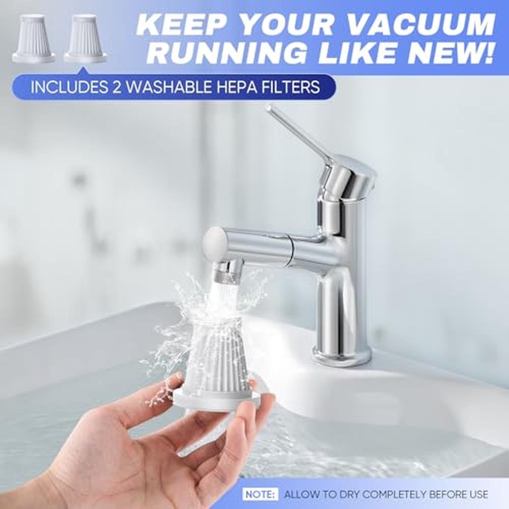 - • EFFICIENT HEPA FILTRATION SYSTEMEquipped with a durable HEPA filter, sakerplus cordless vacuum cleaner for car captures fine particles and debris with ease, ensuring cleaner air during operation. The washable and reusable filter simplifies maintenance and enhances durability. Each vacuum set includes two HEPA filters with a lifespan of up to 10 washes before replacement, providing added convenience for replacements. The 200ml dust cup is sufficient for daily small-scale cleaning
