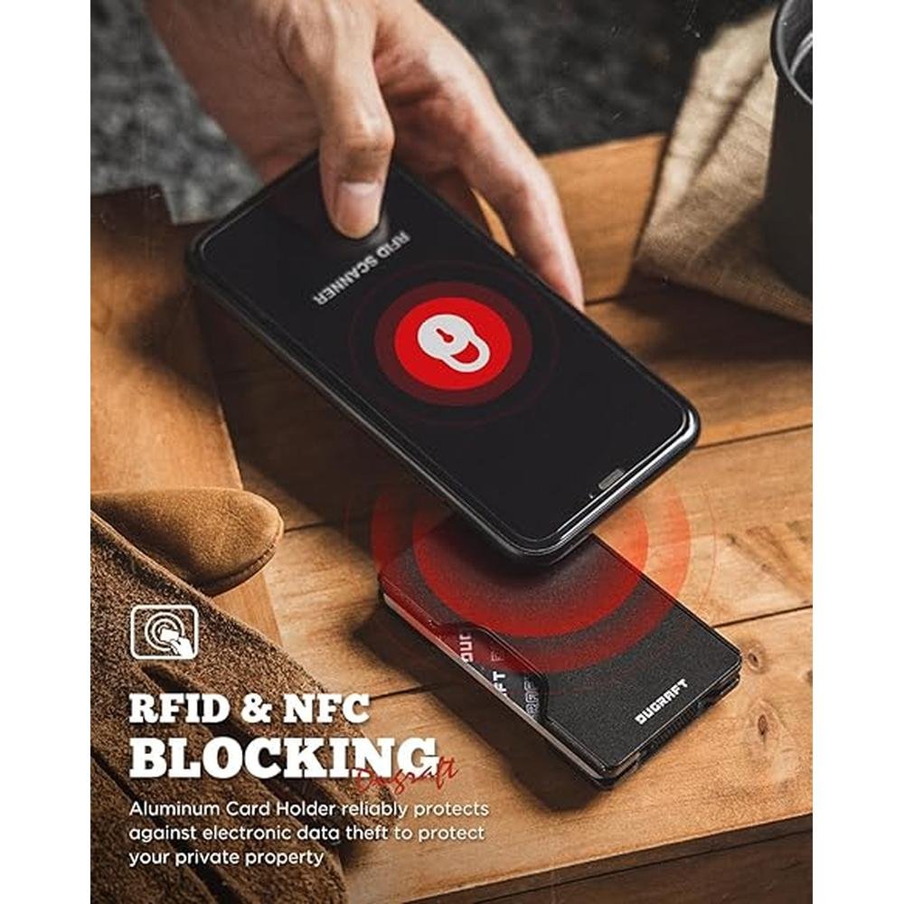 - • RFID Blocking - Breathe freely, your cards are surrounded by composite metal material with advanced RFID blocking technology to ensure your financial and data security.