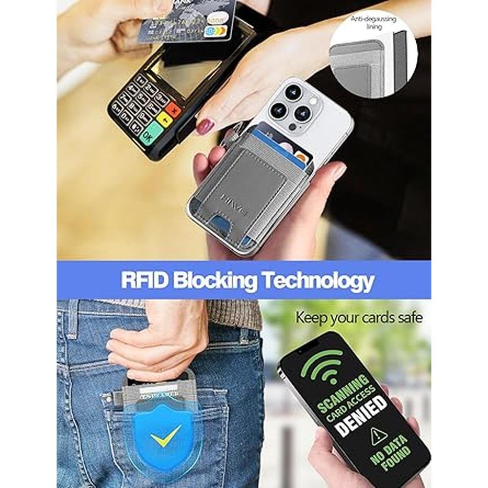 - • RFID NFC Blocking Magsafe wallet card holder can hold up to seven cards and is shielded to keep your credit cards safe from unauthorized scanners and provides degauss protection for your cards to prevent demagnetization. Ensure your identity and properties safe when you are shopping, traveling, or working outside.