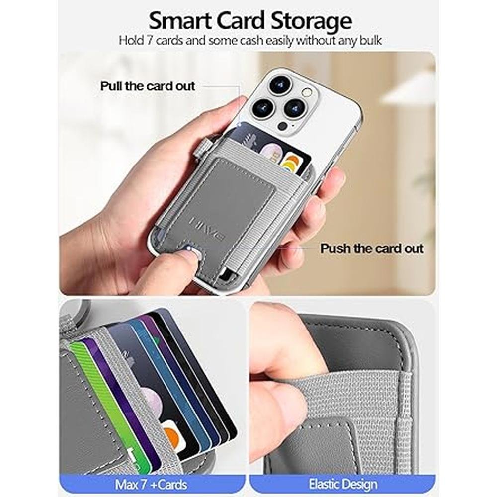 - • Quick Access 7 Cards MagSafe wallet turns your iPhone into a slim wallet with room for 7 cards or some cash. This magnetic card wallet holder suitable for Apple MagSafe is the ideal size to hold your ID and credit cards to keep them close at hand. A thumb slot ensures easy to access any of the cards stored there. So easy to access any of your cards when you are ready to pay for purchases.