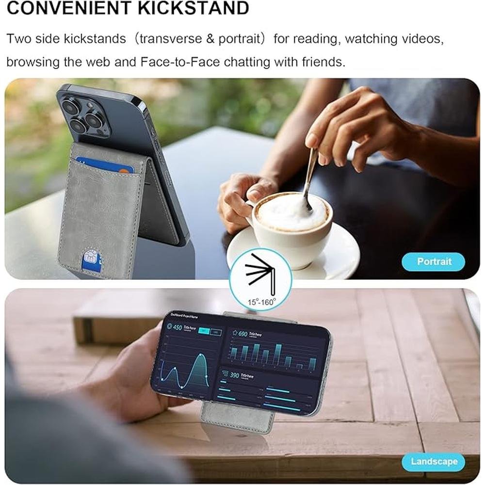 KIHUWEY for MagSafe Wallet Card Holder with Magnetic, Mag Safe Leather Detachable Kickstand RFID Wallet for iPhone 16/15/14/13/12 Pro Max Plus Not for iPhone 13/12 mini (Gray)