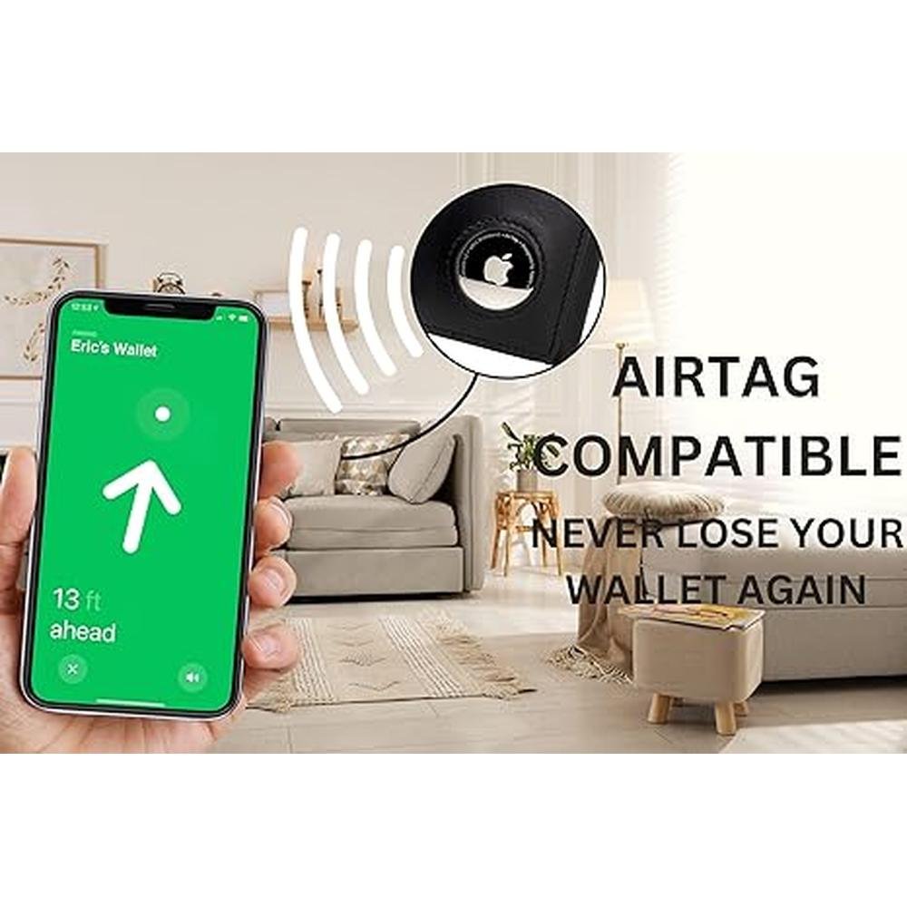 - • Maximum Security - The RFID blocking lining blocks 13.56MHz RFID signals to prevent unauthorized scans from accessing sensitive information. It also has a tracker holder compatible with Apple AirTags. Airtag purchased separately.