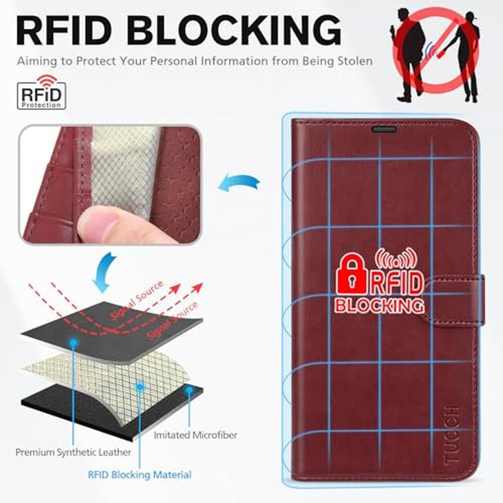 TUCCH Case Wallet for iPhone 17 Pro (6.3") 2025, Stand | RFID Blocking | 4 Card Holders | TPU Shockproof Inner Shell | PU Leather | Magnetic Closure Folio Protective Cover | Dark Red