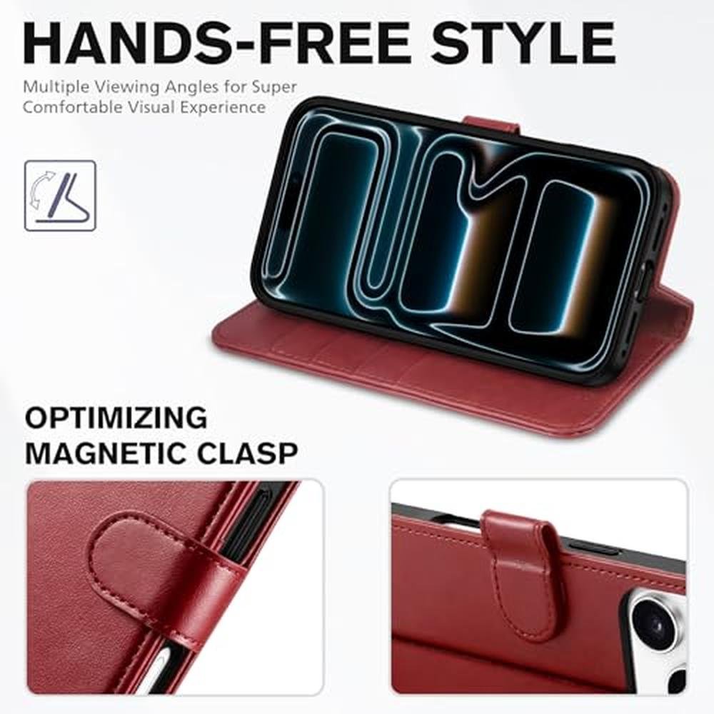 • • Fully Effective Protection: The iPhone 17 Pro flip wallet leather case covers all corners and provides great dual-layer protection for your smartphone. The soft TPU full-body inner case features a shockproof edge and protects your phone against scratches and bumps