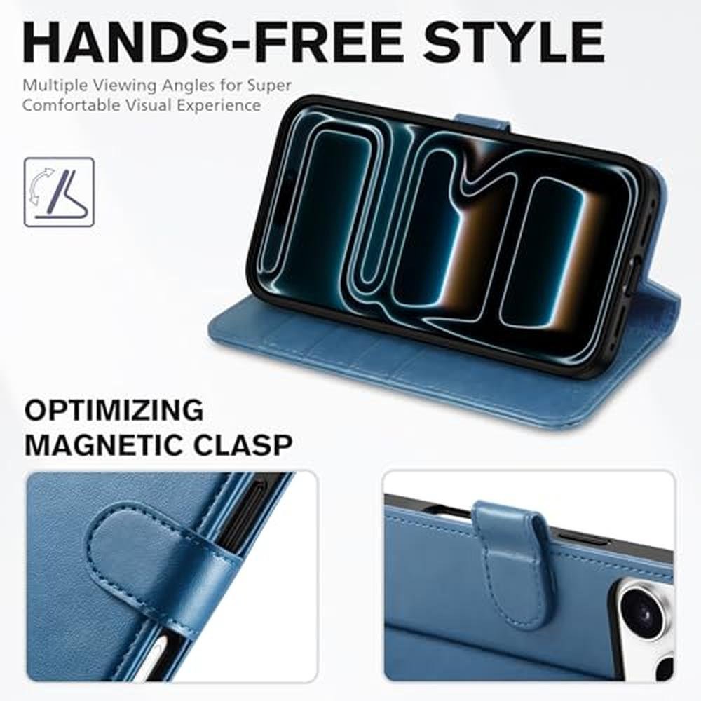 • • Fully Effective Protection: The iPhone 17 Pro flip wallet leather case covers all corners and provides great dual-layer protection for your smartphone. The soft TPU full-body inner case features a shockproof edge and protects your phone against scratches and bumps