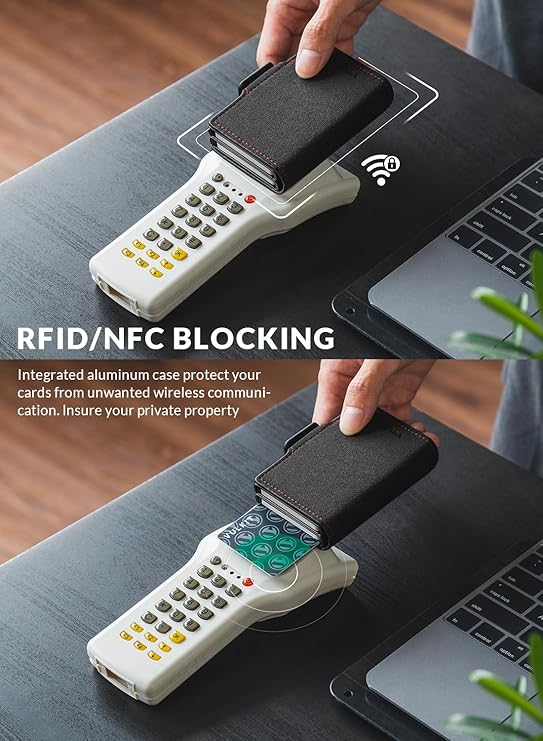 - • RFID/NFC BLOCKING: integrated aluminum case protect your cards from unwanted wireless communication. Ensure your private property safety