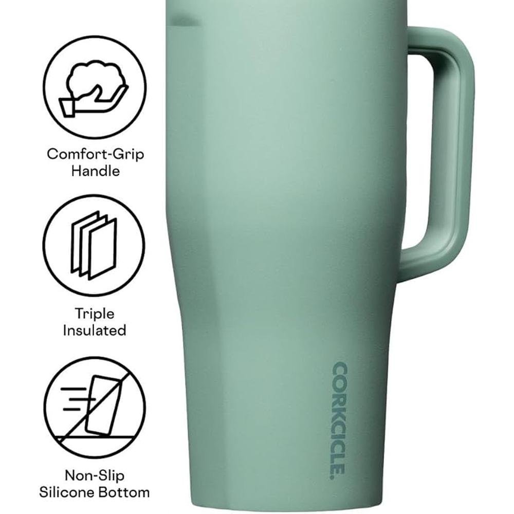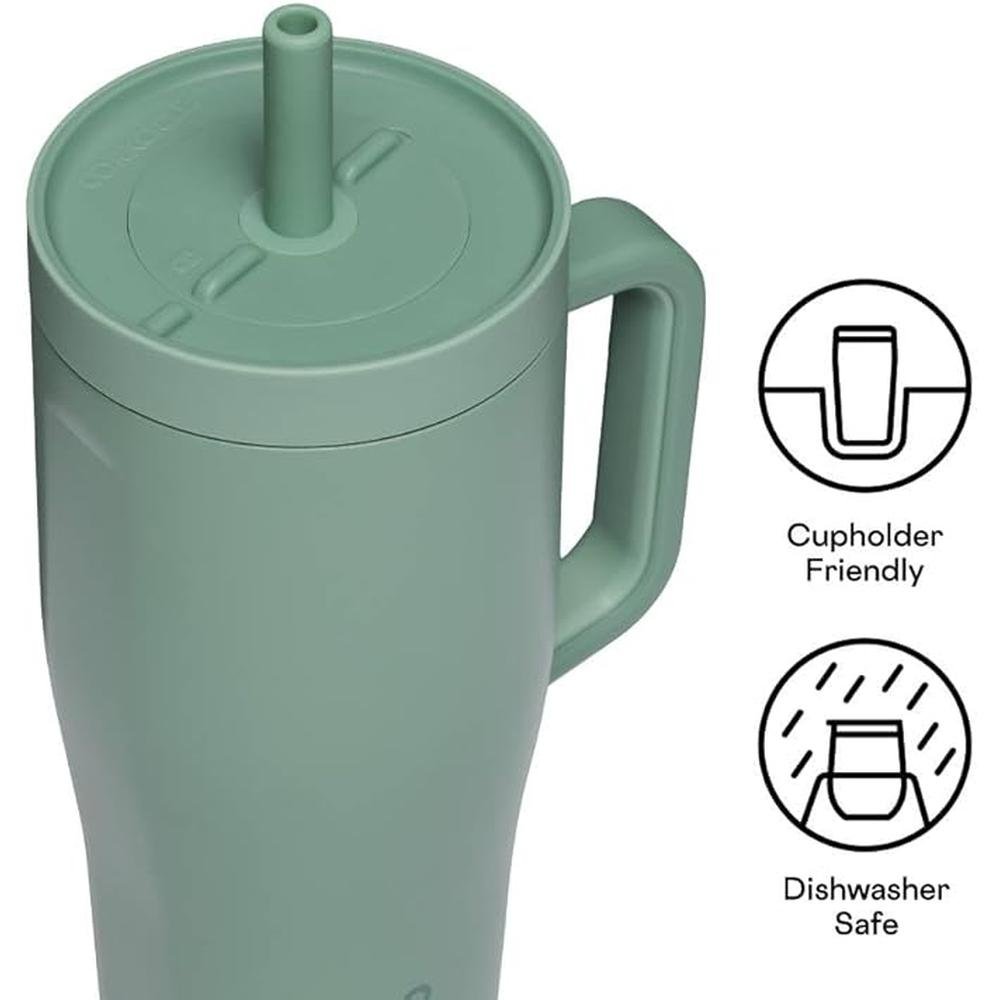 Corkcicle Cruiser Insulated Tumbler with Handle and Straw, 22oz - Thyme