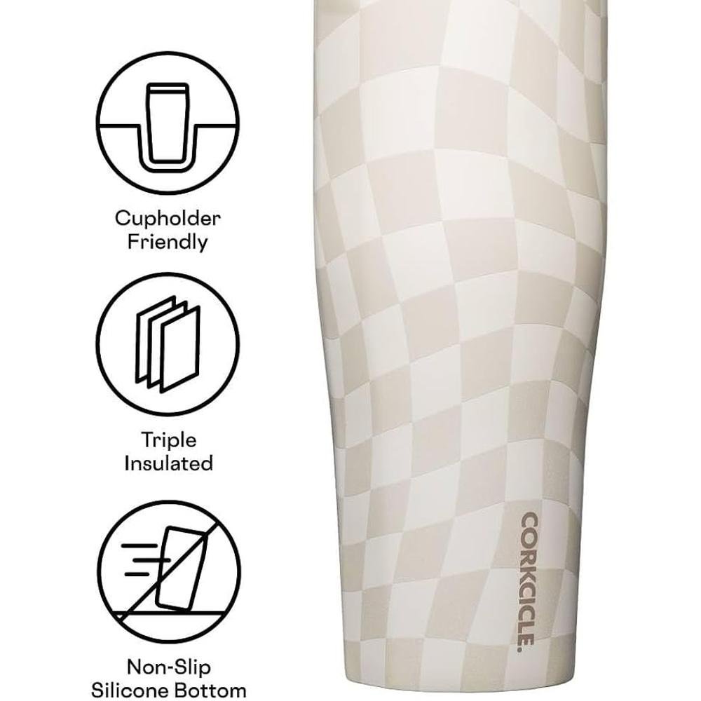 Corkcicle Go Cup XL Insulated Tumbler with Lid and Straw, 30oz Wavy Checkerboard - Neutral