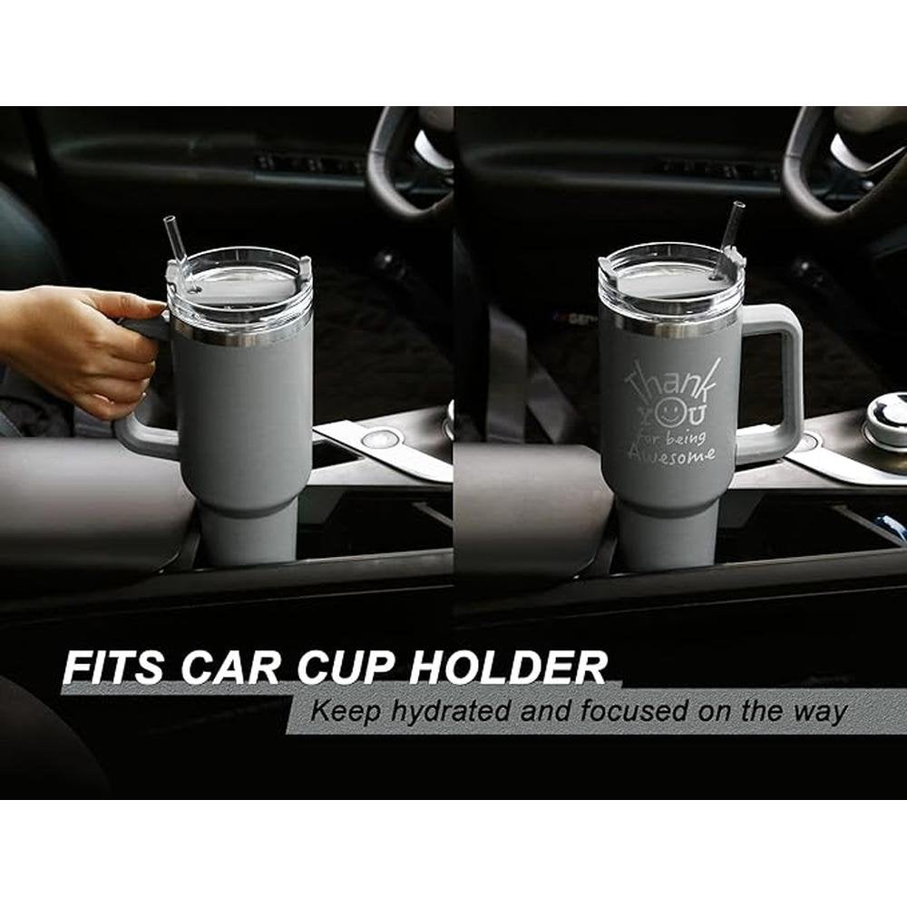- • Large Capacity Comfort Grip Enjoy fewer refills with our 40 oz capacity and stay comfortable with the ergonomic, non-slip handle. Includes a matching straw for easy drinking and fits most car cup holders