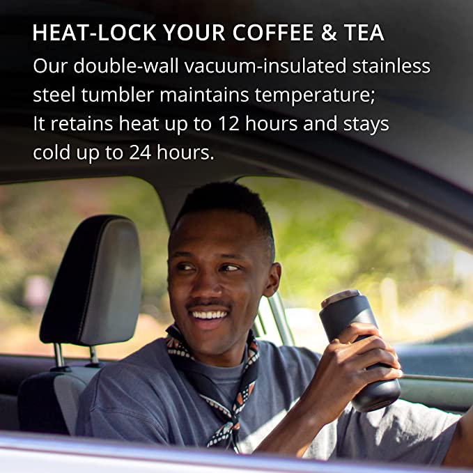 • • HEAT-LOCK YOUR COFFEE TEA - Our 304 18 8 double-wall vacuum-insulated stainless steel tumbler maintains temperature It retains heat up to 12 hours and stays cold up to 24 hours