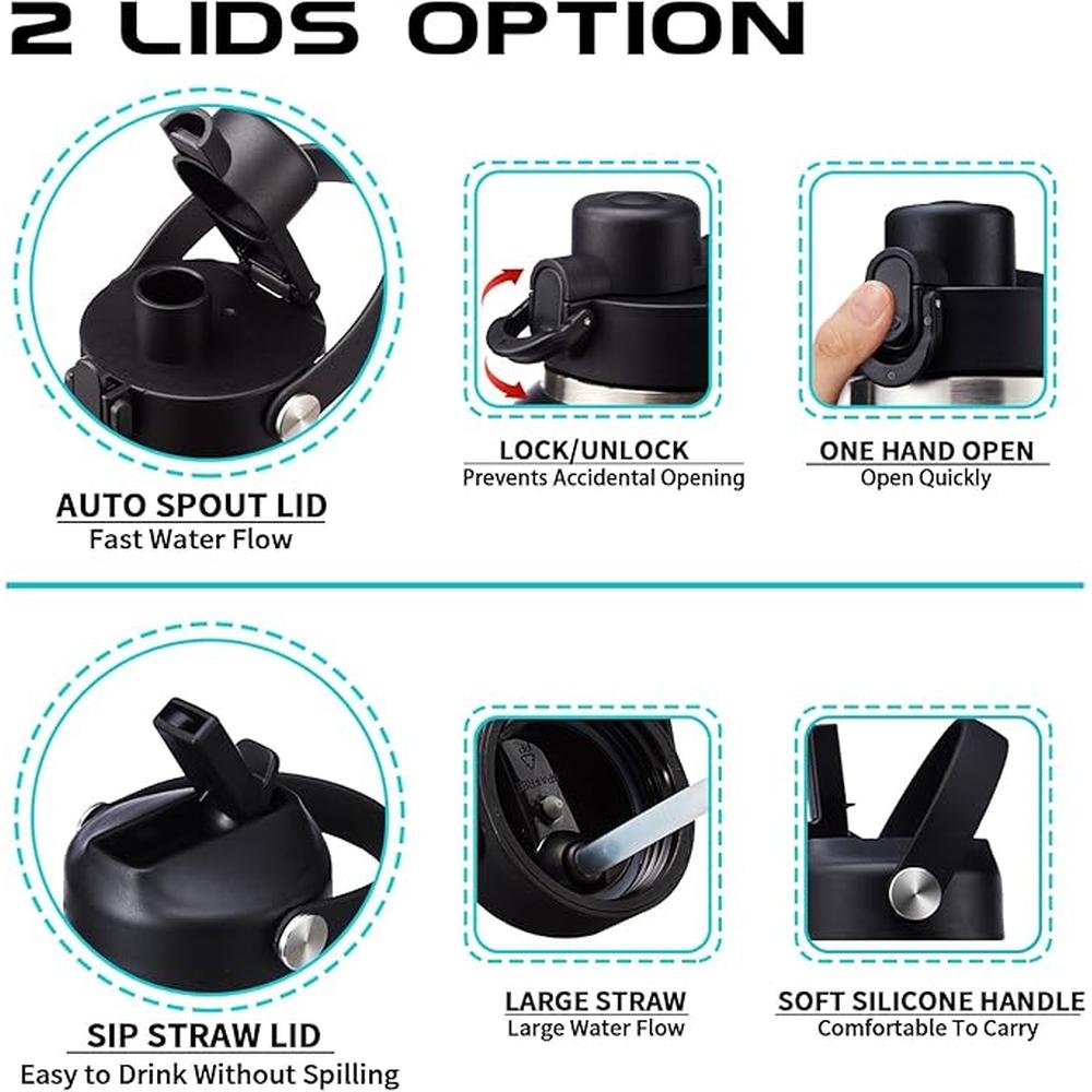 • • TWO LEAKPROOF BPA LIDS (Real Sealed) Insulated travel mug with a fast water flow POP-UP spout lid features a button lock to prevent accidental opening. Sip straw lid allow enjoying a cold drink from our insulated coffee mug without worrying splash on the go. Both lids are design for one-hand opening while driving
