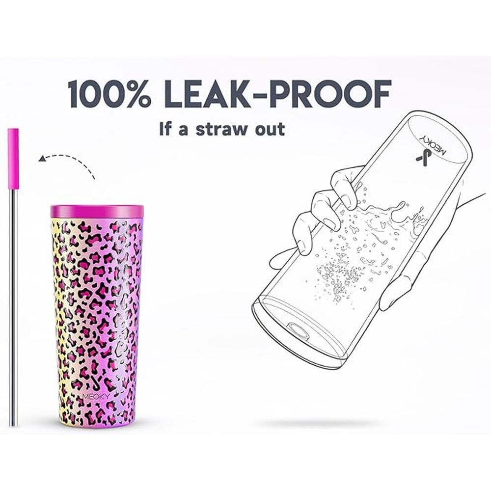 - • KEEPS COLD. With double-wall vacuum insulation, Meoky stainless steel tumbler with lid and straw stays cold for 24 hours.
