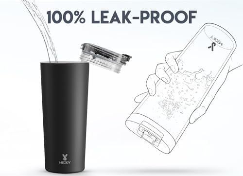 - • NON-SLIP BASE. With non-slip base, Meoky travel coffee tumbler stands up and fights like a man.