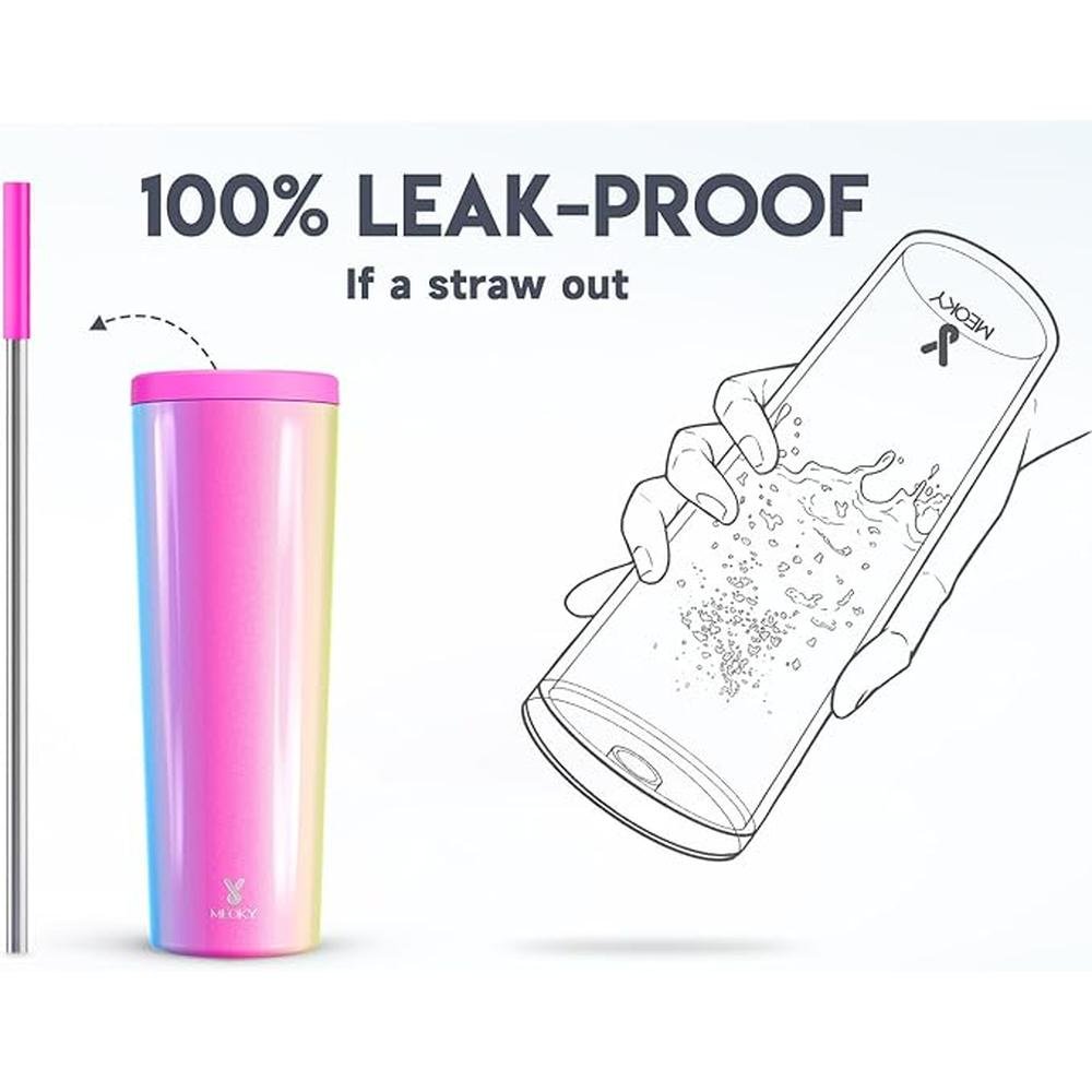 - • KEEPS COLD. With double-wall vacuum insulation, Meoky stainless steel tumbler with lid and straw stays cold for 24 hours.