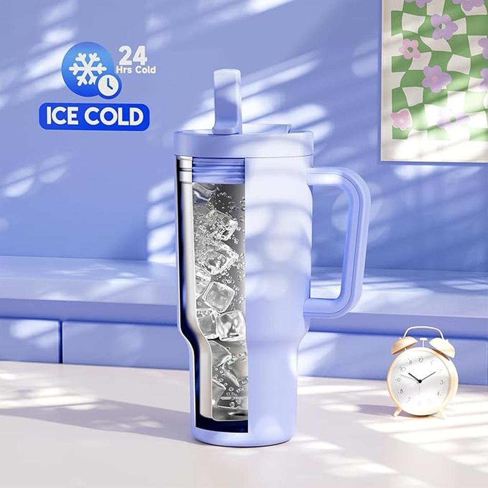 • • 24 HOURS COLD Thanks to the double wall vacuum insulation, Meoky 32 oz flip straw tumbler keeps drinks cold for up to 24 hours. Enjoy perfectly chilled drinks anytime