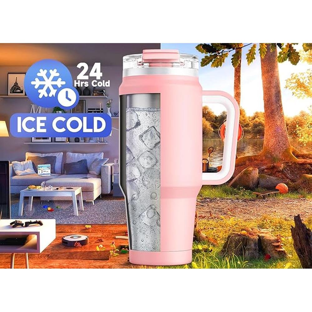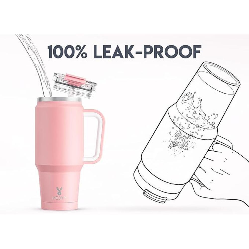 - • KEEPS COLD. With double-wall vacuum insulation, Meoky 32 oz tumbler with handle and straw stays cold for 24 hours and hot for 8 hours.