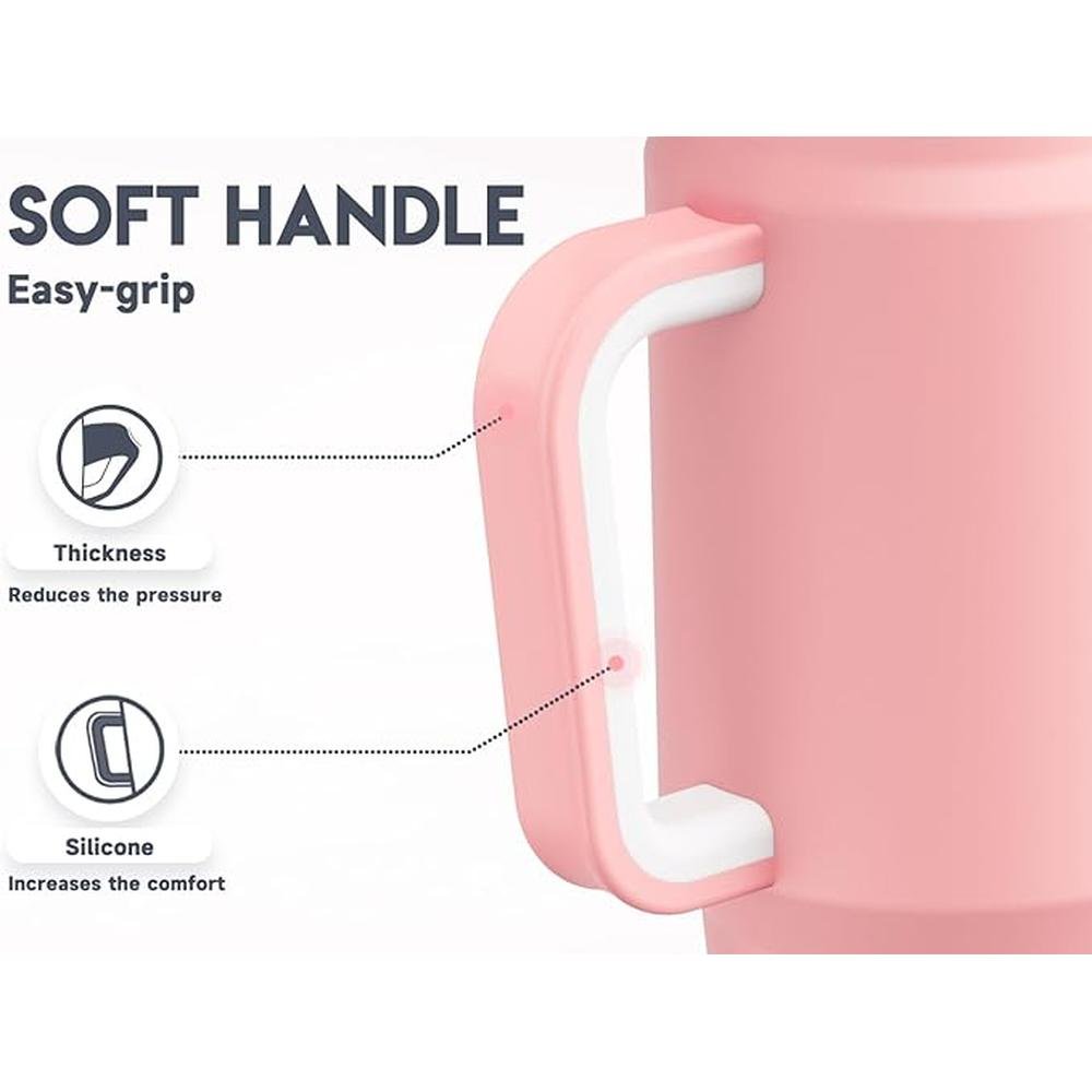 Meoky 32 oz Tumbler with Handle, Insulated Tumbler with Lid and Straw, Stainless Steel Travel Mug, Keeps Cold for 24 Hours, 100 Leak Proof, Fits in Car Cup Holder (Blush)