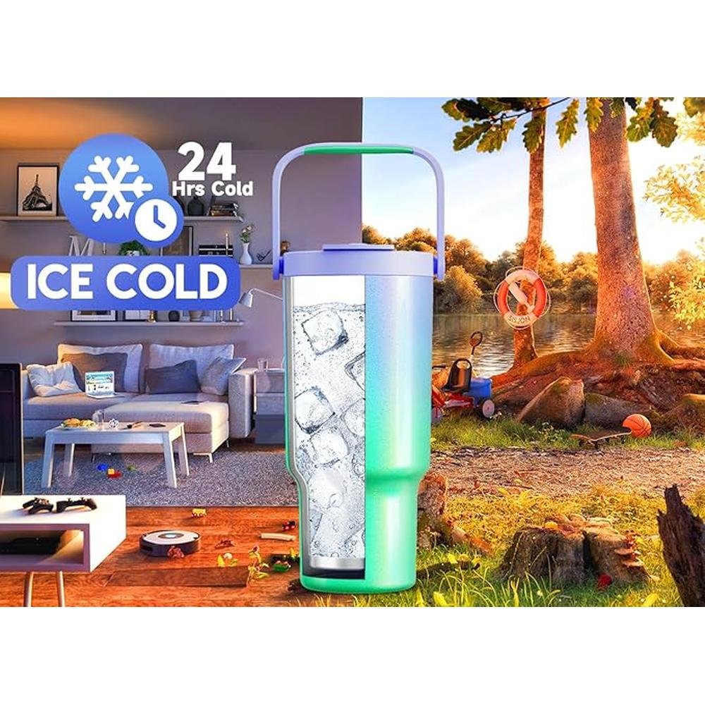 - • KEEPS COLD. With double-wall vacuum insulation, Meoky 32 oz tumbler with handle stays cold for 24 hours and hot for 8 hours.