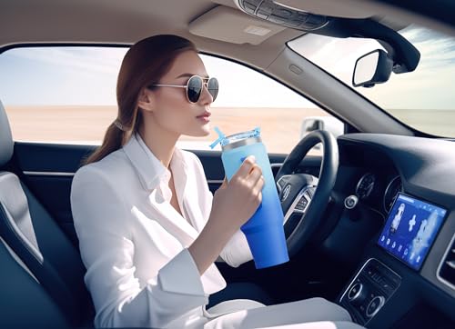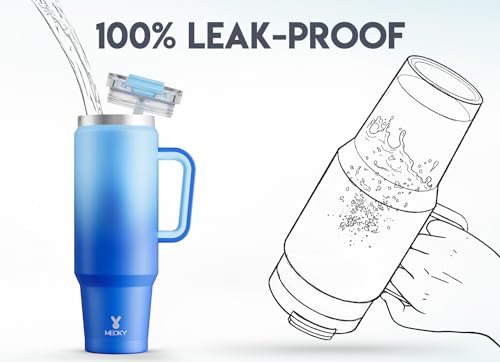 - • KEEPS COLD. With double-wall vacuum insulation, Meoky 40 oz tumbler with handle and straw stays cold for 34 hours and hot for 10 hours.