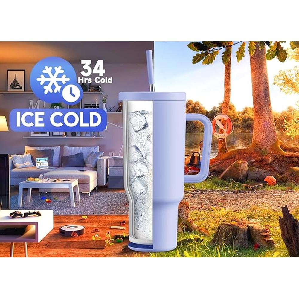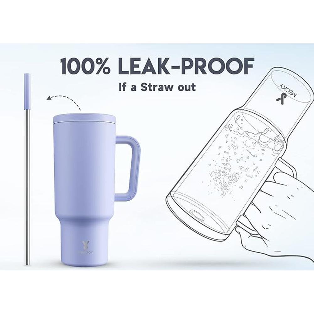 Meoky 40oz Tumbler with Handle, Leak-proof Lid and Straw, Insulated Coffee Mug Stainless Steel Travel Mug, Keeps Cold for 34 Hours or Hot for 10 Hours (Lilac)