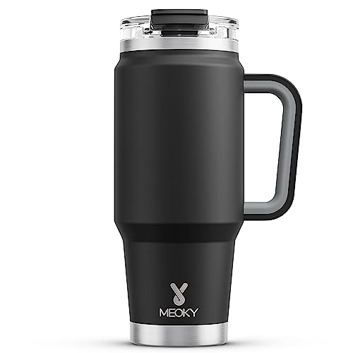 Meoky 40 oz Tumbler with Handle and Straw, Insulated Tumbler with Lid and Straw, Stainless Steel Travel Mug, Keeps Cold for 34 Hours, 100% Leak Proof, Fits in Car Cup Holder (Night)