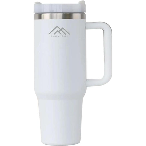 MABLA 40 oz Travel Mug with handle | Stainless Steel Vacuum Cup | Insulated Resuable Tumbler with Straw & Lid Leakproof Travel Coffee Mug for Water, Iced Coffee or Tea and More (Winter White, 40 oz)
