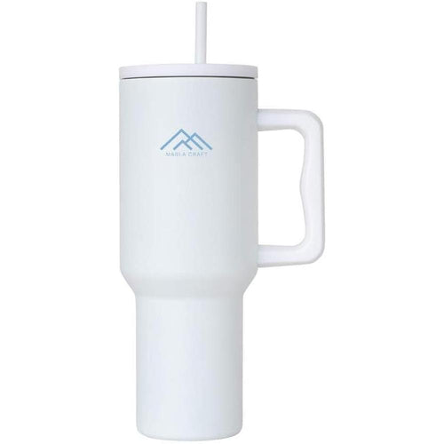 MABLA 40 oz Tumbler with handle | Stainless Steel Vacuum Cup | Insulated Resuable Tumbler with Straw & Lid Leakproof Travel Coffee Mug for Water, Iced Coffee or Tea and More (White)