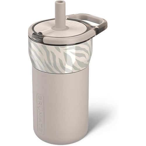 BrüMate Leap 12oz 100% Leakproof Kids Tumbler with Handle and Silicone Soft Straw | Drop Resistant Silicone Sleeve | For Kids 4+ | Insulated Stainless Steel | Cup Holder Friendly | 12oz (Zebra)