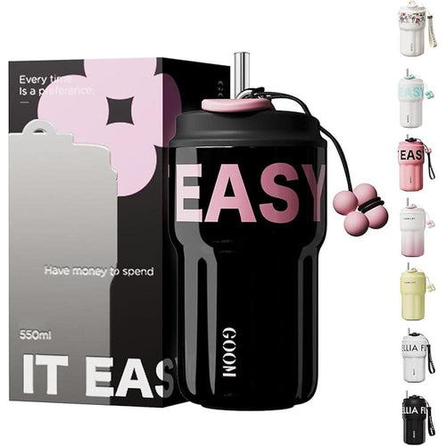 GOOM 18oz Travel Coffee Mug Tumbler with Lid and Straw, 18/10 Stainless Steel, 6-Layer Insulation, Spill Proof, Leak Proof Tumbler with Straw Mouth Rotary Lock, Coffee Mugs for Women - Black, Pink