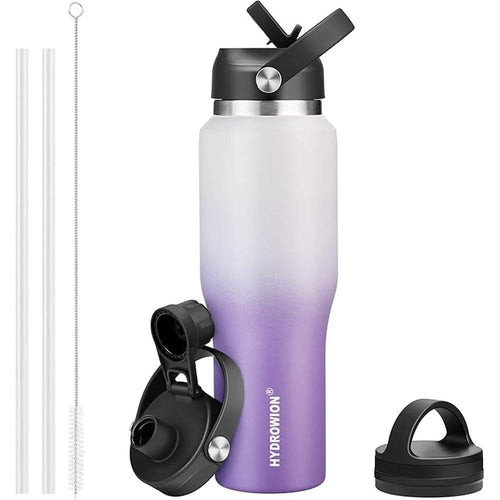 HYDROWION Stainless Steel Water Bottle, 32oz Tumbler Water Flask W/Straw Lid, Spout Lid and Flex Cap, Insulated Water Bottle (Cold for 48 Hrs,Hot for 24 Hrs) Fit in Any Car Cupholder,White&Purple