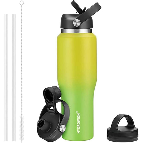 HYDROWION Water Bottle Stainless Steel,Vacuum Insulated Leak Proof Tumbler 32oz with Straw Lid, Spout Lid and Flex Cap(Cold for 48 Hrs, Hot for 24 Hrs), Fit in Any Car Cup Holder, Yellow&Green